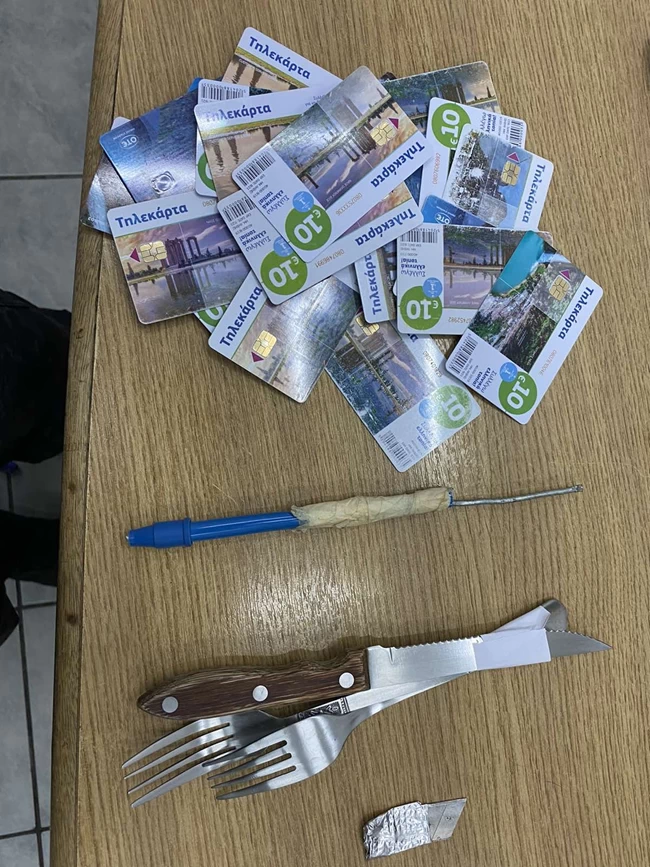 Λοστοί, ορειβατικά σχοινιά, μαχαίρια, γάντζοι μερικά από τα ευρήματα στις φυλακές Κορυδαλλού μετά από αιφνίδια έρευνα σε κελιά και κοινόχρηστους χώρους.