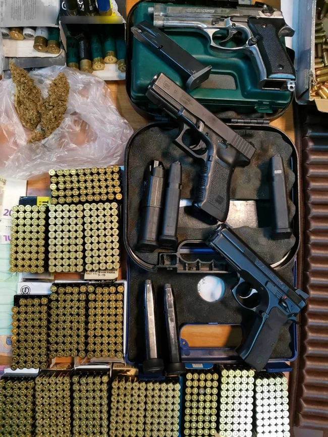Ελεύθερος με περιοριστικούς όρους αφέθηκε μετά την απολογία του ο 45χρονος Ηρακλειώτης επιχειρηματίας στην κατοχή του οποίου βρέθηκαν τέσσερα δενδρύλλια κάνναβης, τρία πιστόλια, δύο κυνηγετικά όπλα και μικροποσότητα κοκαΐνης.