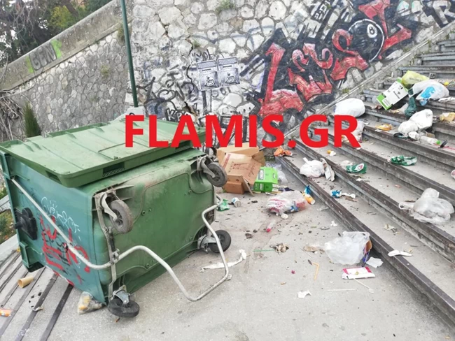 Άγνωστοι στη διάρκεια της νύχτας στην Πάτρα "ξέσπασαν” για άγνωστους λόγους σε κάδους απορριμμάτων, τους οποίους πέταξαν στις σκάλες της Αγίου Νικολάου από το άνω μέρος με αποτέλεσμα το περιεχόμενο τους να αδειάσει σε όλη σχεδόν την έκταση τους και σε πολλά σημεία η διέλευση των πεζών να είναι σχεδόν αδύνατη.